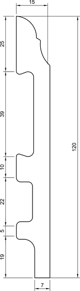 Battiscopa in polimero Ard Italia T70 misura 2000x15x120 mm
