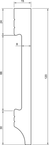 Battiscopa in polimero Ard Italia JC516 misura 2000x15x120 mm