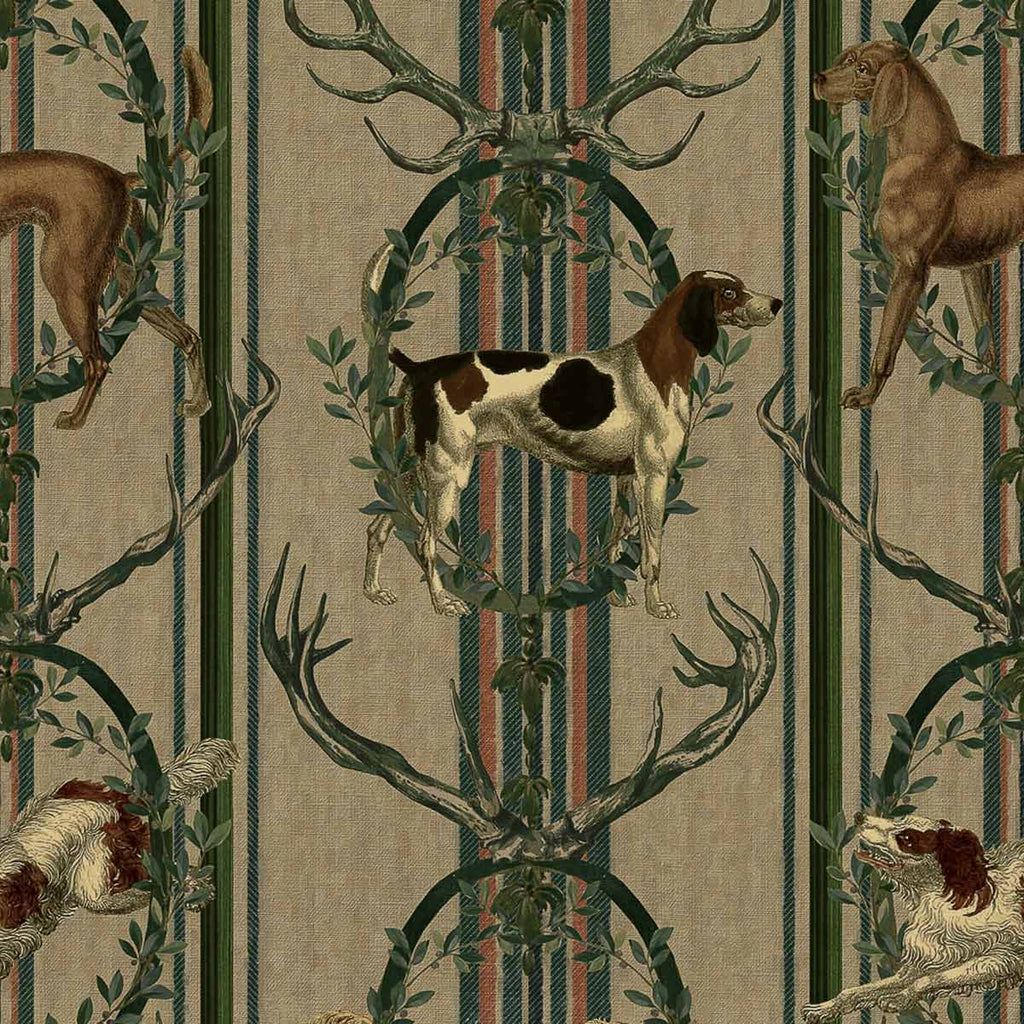 Leali, agili e intelligenti, c'è una ragione per cui i cani alpini sono così famosi tra le razze di tutto il mondo. Questo motivo giocoso celebra lo spirito di quei fedeli compagni con una coppia di nobili segugi che saltano su uno sfondo a strisce. Ghirlande di foglie, corna maestose e una striscia elegante si uniscono per completare il bellissimo design MOUNTAIN DOGS.