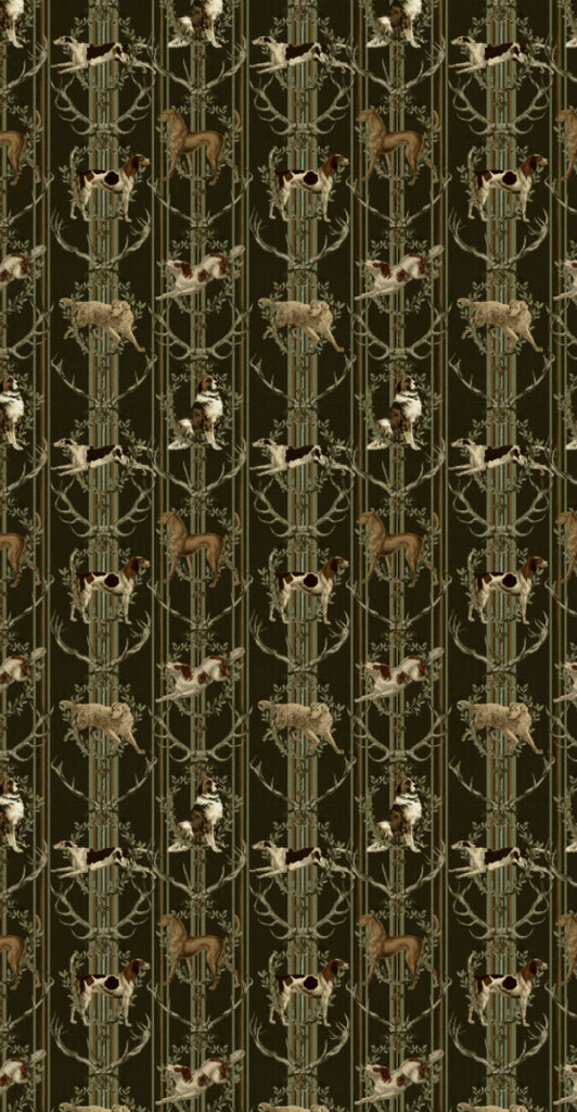 Leali, agili e intelligenti, c'è una ragione per cui i cani alpini sono così famosi tra le razze di tutto il mondo. Questo motivo giocoso celebra lo spirito di quei fedeli compagni con una coppia di nobili segugi che saltano su uno sfondo a strisce. Ghirlande di foglie, corna maestose e una striscia elegante si uniscono per completare il bellissimo design MOUNTAIN DOGS.
