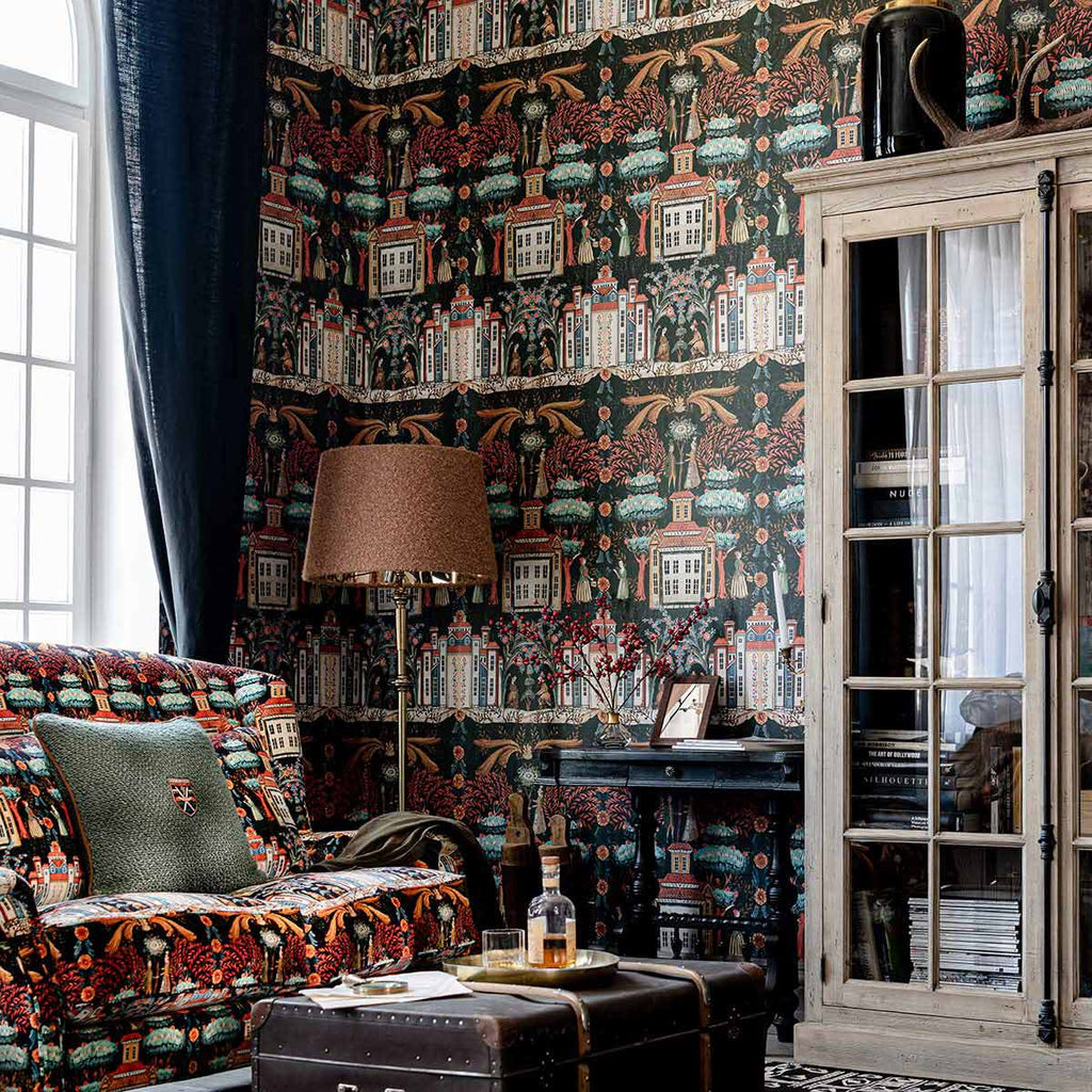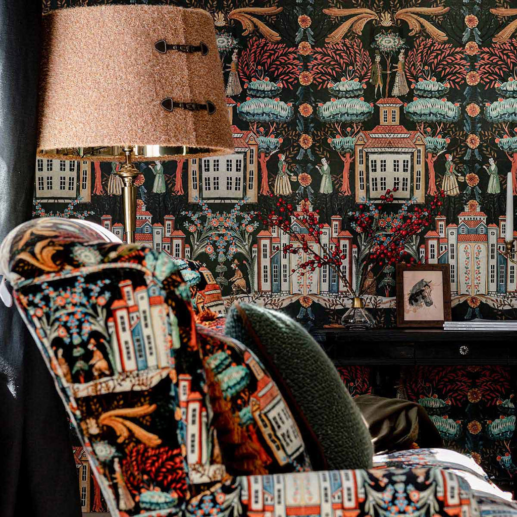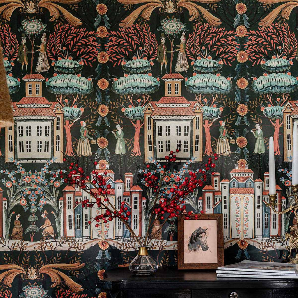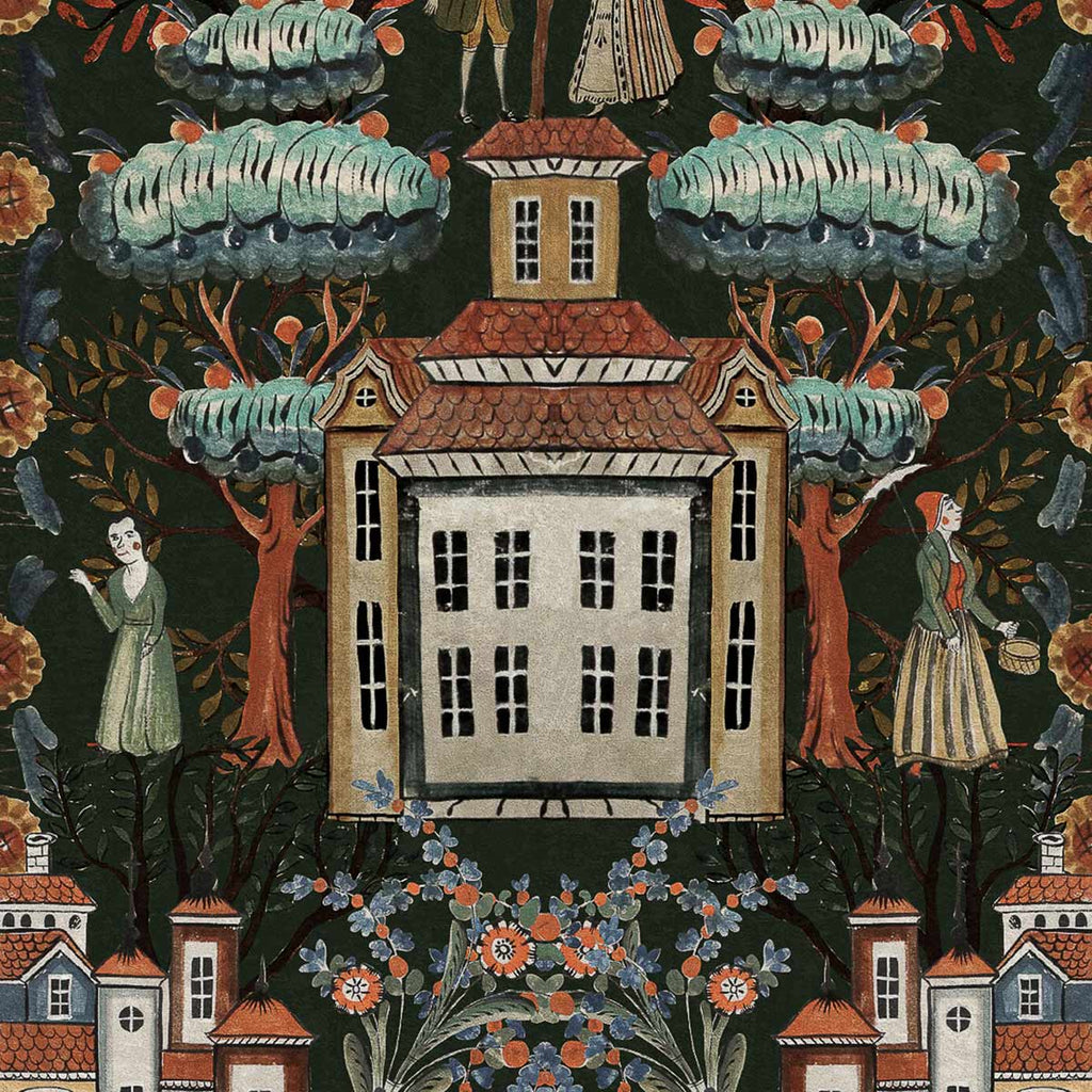 Entra in un mondo di meraviglie con TALES OF TYROL, un design magico in cui l'architettura tirolese e la gente del villaggio si uniscono sotto un baldacchino di fogliame fantastico. Con le guance rosee nei loro costumi tradizionali, questi affascinanti personaggi abitano una città immaginaria circondata da alberi e fiori in una miriade di sfumature simili a gioielli.
