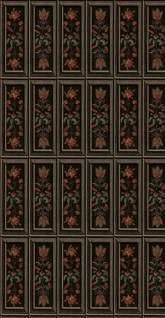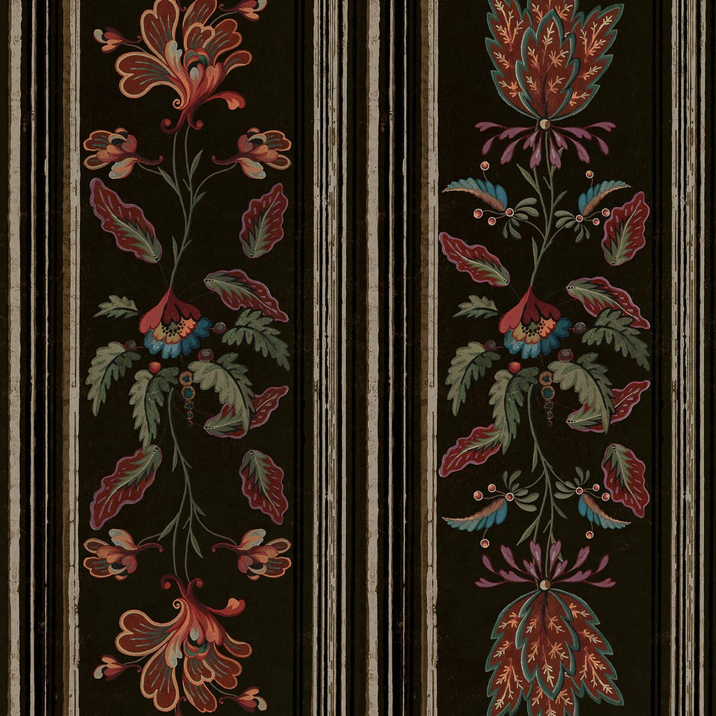 Con i suoi tratti pittorici e gli elementi di ispirazione folcloristica, questa carta trompe l'oeil è progettata per creare l'aspetto dei tradizionali pannelli tirolesi che si trovano dipinti sui mobili o anche sulle pareti delle case. Disponibili in tortora, verde alpino e nero drammatico, i fiori infuocati e stilizzati e le foglie delicate sono incorniciate da un convincente bordo a forma di pannello che crea una bellissima carta da parati stravagante.