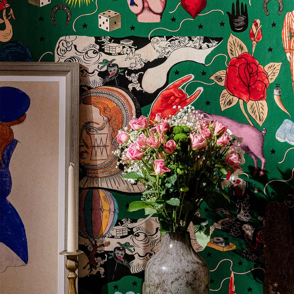 Immergiti in un mondo di magia e illusioni ottiche, dove i confini della realtà diventano confusi. Lascia che la tua immaginazione ti porti in un altro regno dove i maiali volano, gli animali giocano e i portafortuna sono lì a portata di mano. Sopra le stelle, le nuvole e il sistema solare si trova questo ILLUSIONARY DAYTIME. Uno in cui puoi fuggire dalla realtà come la conosci. Uno in cui la magia è realtà, allarga i tuoi orizzonti e lascia che il tuo senso di meraviglia prenda il sopravvento in questa sfera onirica su sfondi blu e verdi.