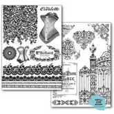 Confezione da 2 carte Transfer con Alfabeto e Fregi in bianco e nero by Stamperia.
