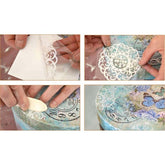 I Rub-on sono soggetti decorativi di colore bianco, ideali anche su fondi scuri. Per trasferire l'immagine basta far aderire il decoro sulla superficie e togliere la pellicola.
