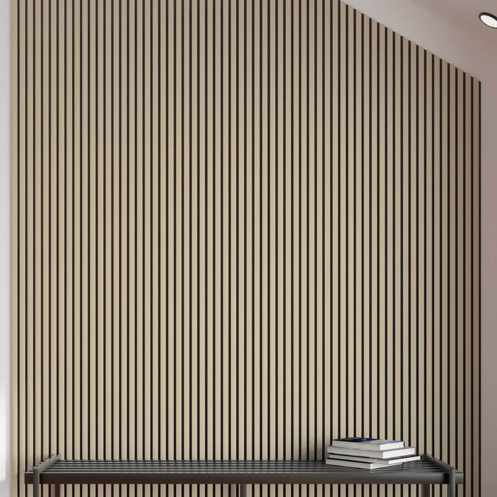 Listelli Silence in MDF con fondo feltro fonoassorbente colore Tortora mis. 278 cm x 60 cm